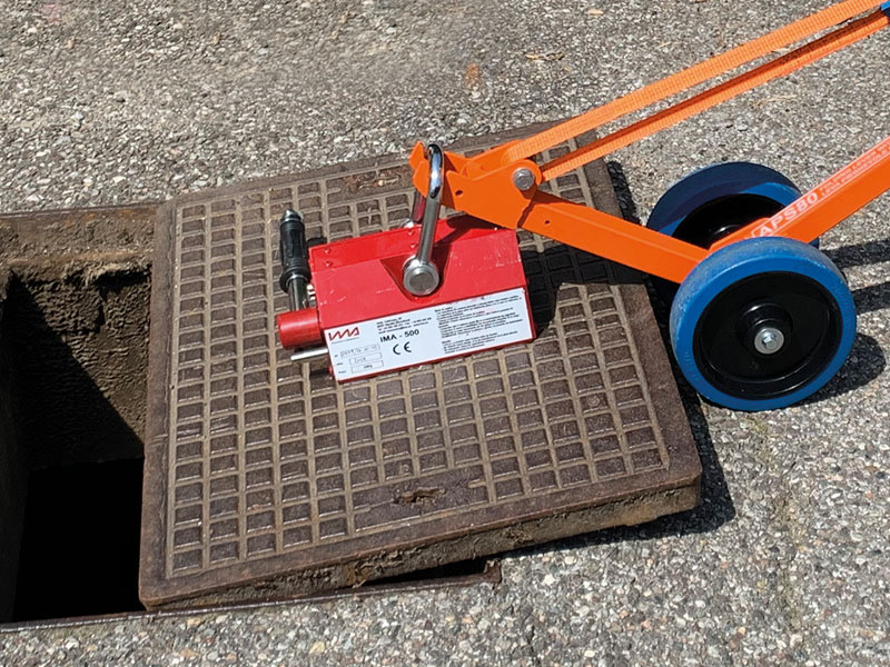 Deze lifter is een permanente magneet die geschikt is voor het tillen van een putdeksel met een totaalgewicht tot maar liefst een halve ton. Deze putdekselmagneet wordt in de meeste gevallen gebruikt in combinatie met de APS90. Bovendien kan de PM500 worden opgetild door de arm van bijvoorbeeld een minikraan of shovel.