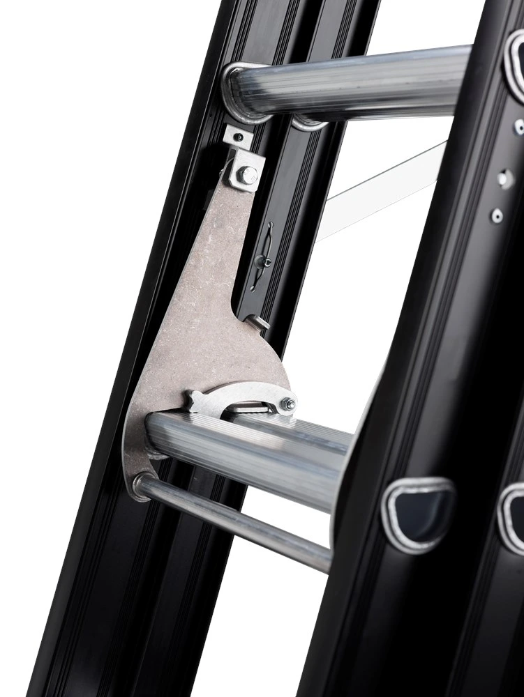 Dankzij de unieke D-sport met antislip stavak van 4,5 centimeter en de stabiliteitsbalk sta je altijd stevig en comfortabel op deze ladder. De ladder is eenvoudig in en uit te schuiven dankzij de automatisch vergrendelende schommelhaak en de toprollen aan de uiteinden. Bovendien is de ladder voorzien van een vuilafstotende coating, waardoor hij er niet alleen mooi uitziet, maar ook gemakkelijk te reinigen is.