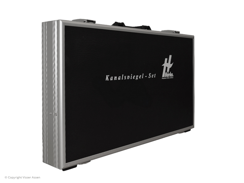 Deze set rioolspiegels bestaat uit twee verschillende inspectiespiegels. De grootste spiegel van de twee heeft een afmeting van 550 x 250 mm. De kleine spiegel meet 400 x 250mm. Standaard wordt deze set kanaalspiegels geleverd in een transportkoffer van robuust aluminium. Bovendien zijn de twee rioolspiegels uitgevoerd met een verbindingsstuk, waarmee je de beide kanaalspiegels gemakkelijk kunt monteren op het standaard meegeleverde, houten handvat. Montage op een los mee te bestellen telescoopsteel is eveneens mogelijk. Met behulp van deze telescopische steel kun je zeer diep in het riool, rookkanaal of schoorsteen kijken.