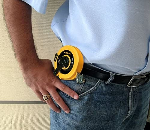Dat Komelon dé toonaangevende fabrikant is op het gebied van professionele meetlinten, wordt je bij deze rolband al snel duidelijk. Want ondanks de enorme lengte van wel 30 meter, is deze meetband uitgevoerd als een flink uit de kluiten gewassen rolmaat. Met een behuizing van nog geen 20 cm, past dit meetlint in iedere broekzak. Of aan je riem natuurlijk, dankzij de handige riemclip.