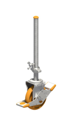 Dit spindelbare zwenkwiel is voorzien van een spindelmoer met borging. Hiermee kun je deze wielen in een handomdraai monteren. Let erop dat deze zowel in zwenk- als rijrichting geremde wielen geremd loodrecht onder de standelementen staan. Hierdoor staat de rolsteiger namelijk vele malen stabieler.