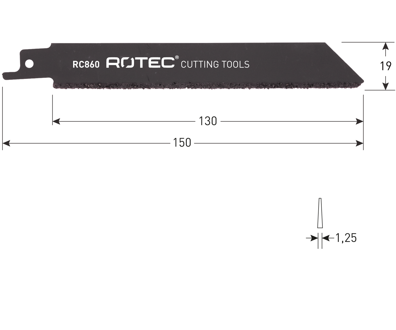 - Afmetingen: 150 x 19 x 1,25 mm