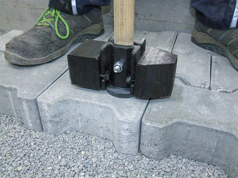 Stenen die machinaal zijn gelegd en nog niet zijn afgetrild, kun je eenvoudig aantikken met deze speciale gummihamer. De lange steel en het lage eigengewicht dragen bij aan een goede werkhouding. Door de unieke vormgeving kun je deze speciale hamer op de grond laten staan, hij valt namelijk niet om!