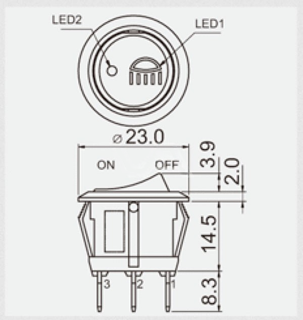 Schakelaar 20A 14V zwaailamp/balk logo