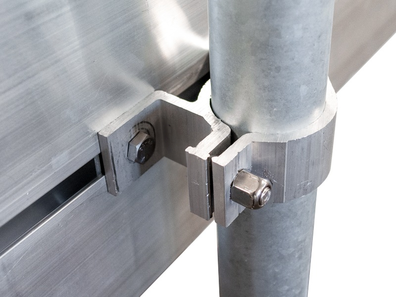 De schrikhekplank is uitgevoerd in robuust aluminium. Dit ijzersterke kokerprofiel is over de gehele lengte voorzien van een sleuf. Hierin kun je eenvoudig de meegeleverde verkeersbordenbeugels klemmen, waarna je de schrikhekplank gemakkelijk aan de eveneens meegeleverde palen kunt bevestigen. Uiteraard zijn beide uiteinden van de schrikhekplank voorzien van kunststof einddoppen.