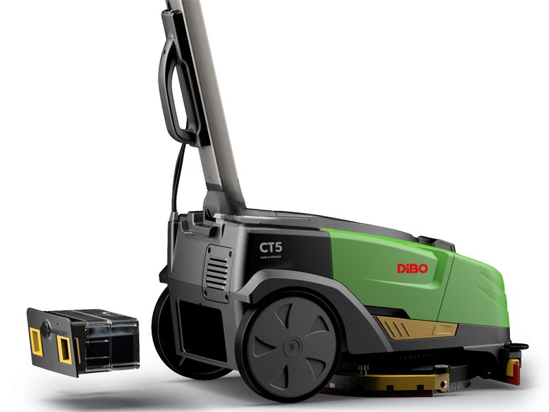 De CT5-B28 is DiBO's antwoord op vele vragen uit de markt. De schrob-zuigmachine is namelijk buitengewoon compact. Bovendien kent deze schrobmachine op accu een zeer aantrekkelijk prijskaartje.