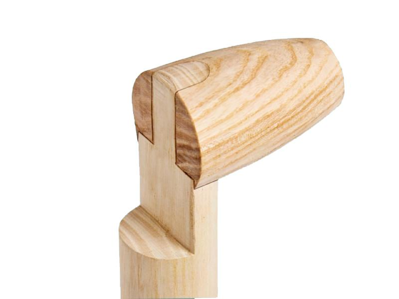 Deze gebogen steel van Atlas is van de allerhoogste kwaliteit. Deze schopsteel wordt namelijk gemaakt uit essenhout dat zich bevindt aan de onderzijde van de stam. Hier zit het meest geschikte hout voor de schopsteel.