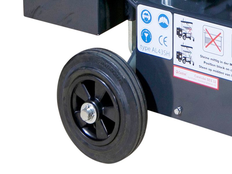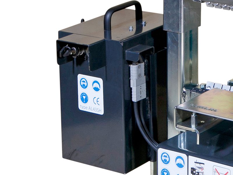 De AL43SH14 is voorzien van een onderhoudsvrije accu en een volautomatische acculader die in de behuizing van de machine is gemonteerd. De acculader schakelt automatisch over naar onderhoudsstand wanneer de accu geladen is. De accuen lader zitten weggewerkt in een kast die los te halen is van de machine zodat het gewicht sterk gereduceerd wordt, handig voor transport.