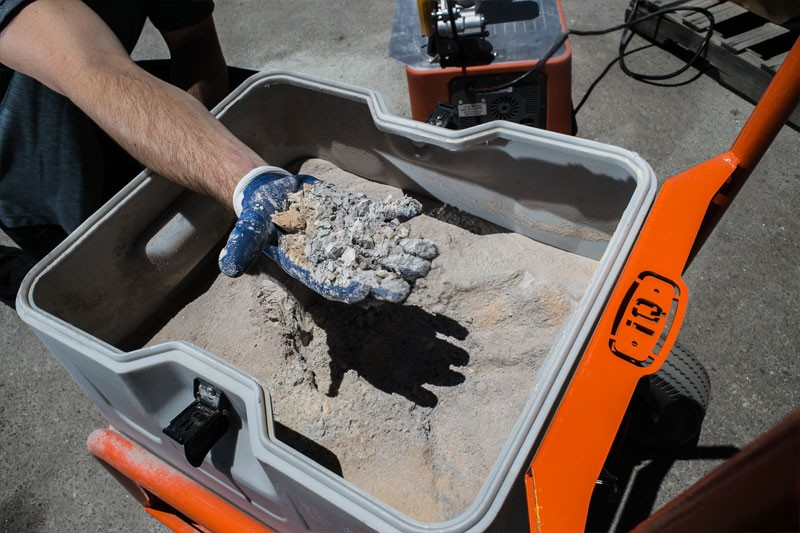 Steenzaag met geïntegreerde stofopvang