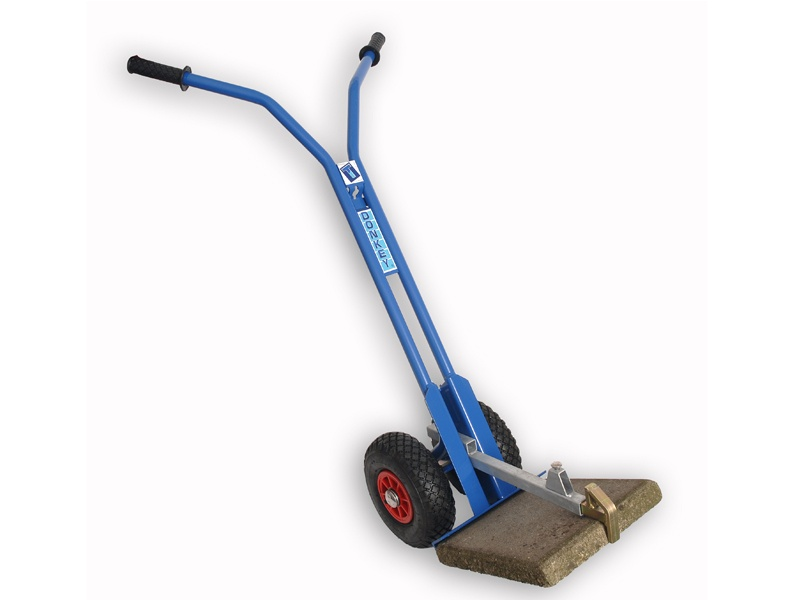 De Tegeldonkey T-Donkey is de beste en meest doeltreffende manier om je tegels van 30 tot en met 60 centimeter te verplaatsen. Je klemt de blauwe rand achter de ene rand van de tegels. Vervolgens stel je de haak eenmalig op de gewenste breedte. Hierna klemt het mechanisme zichzelf om de tegel en rijd je er dankzij de luchtbandjes zo mee weg. En met hetzelfde gemak leg je de tegel zo aan tussen de bestrating.