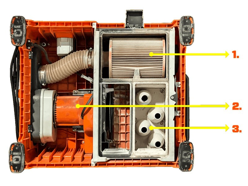 De iQ 228 CYCLONE is in staat een ware revolutie te ontketenen in de bouwwereld. Want dankzij de zeer innovatieve stofafzuiging is het verwerken van vieze en natte tegels voorgoed verleden tijd. Deze tegelzaagtafel is namelijk uitgerust met een uniek stofafzuigsysteem. Deze stofafzuiging zuigt het stof direct weg bij de zaagtafel. De vier interne cyclonen dwingen het grootste deel van het stof met behulp van centrifugale kracht direct in het stofreservoir, nog voor dat dit stof de kans krijgt het filter te bereiken. De speciale motor, die zowel de stofafzuiging als de cirkelzaag aandrijft, weet maar liefst 99,5 procent van al het stof te verzamelen. Het filter weet zelfs de kleinste deeltjes uit de lucht te halen voordat deze deeltjes in de ademzone van de gebruiker kunnen komen.