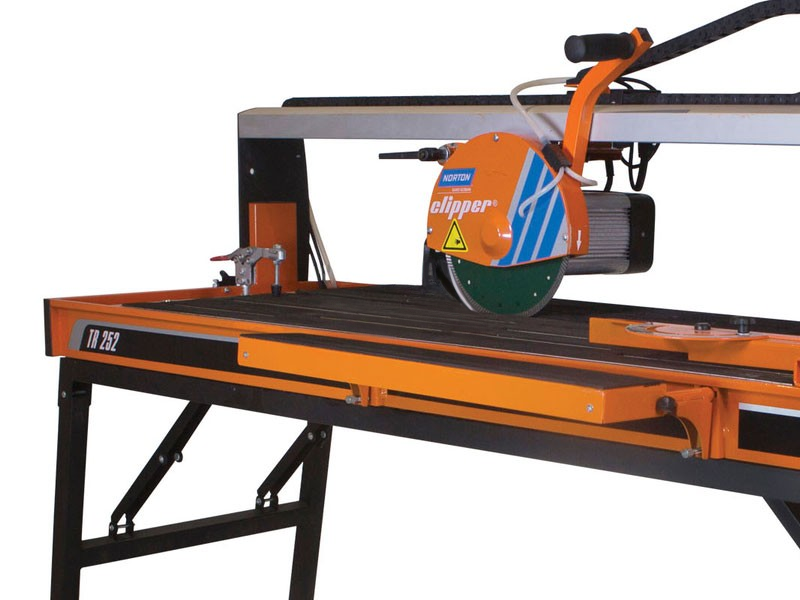 De TR252 van Norton Clipper is de meest uitgebreide tegelzaagmachine in ons online assortiment. Niet alleen is deze tegelzaag uitgevoerd met een extra lange zaagtafel, de TR252 is eveneens voorzien van instelbare zaagdiepte. Bovendien wordt hij aangedreven door een flink krachtigere motor.