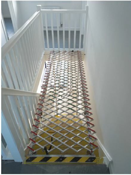 - Aanpasbaar Frame: Het telescopische frame kan worden aangepast aan verschillende trapgatmaten, wat het geschikt maakt voor de meest complexe trappenhuizen.