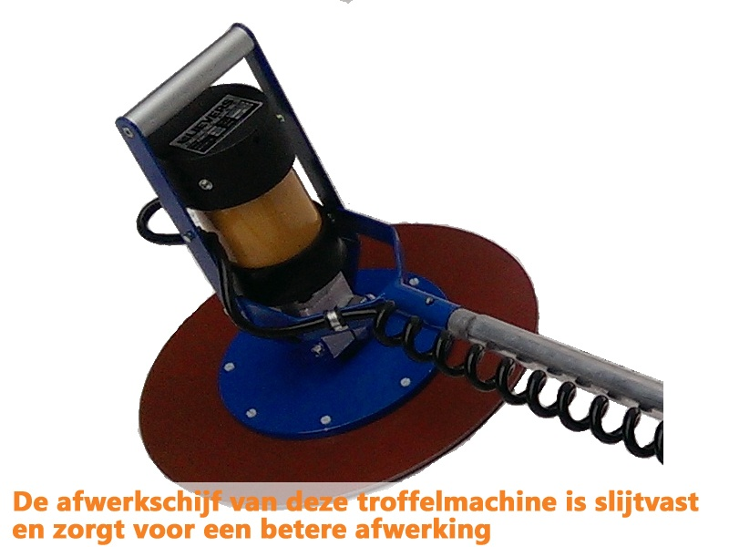 Deze troffelmachine is voorzien van speciale schijven. Deze zijn namelijk slijtvast en lichter dan de gangbare schijven die van staal zijn gemaakt. Ze gaan dus langer mee, en dat scheelt in de portemonnee! Daarbij zijn deze schijven aanzienlijk stijver, een eigenschap die zorgt voor een betere afwerking. Het werk wordt hiermee een stuk vlakker en sterker.