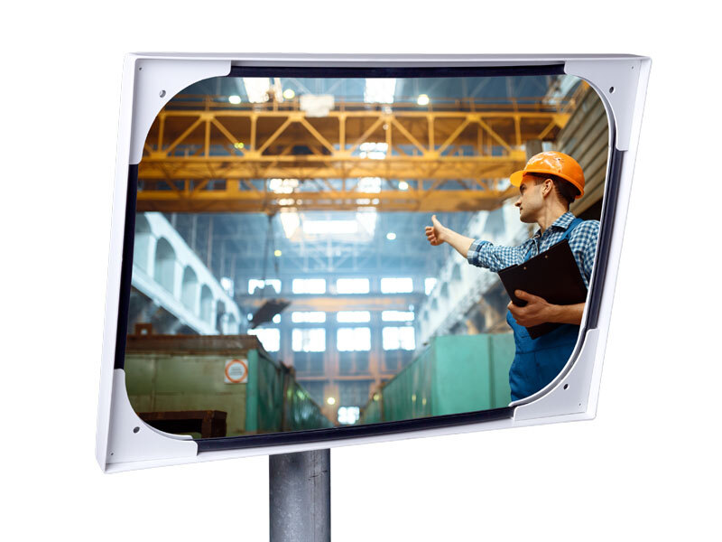 Hoewel een spiegel van polycarbonaat een minder scherp beeld biedt dan een glazen industriespiegel, is het zicht nog altijd zeer goed te noemen. Daarmee is deze spiegel uitermate geschikt om te worden opgehangen bij bijvoorbeeld parkeerplaatsen, magazijnen en industrieterreinen. En omdat polycarbonaat niet kan versplinteren, is deze industriespiegel ook toegestaan in de foodsector!
