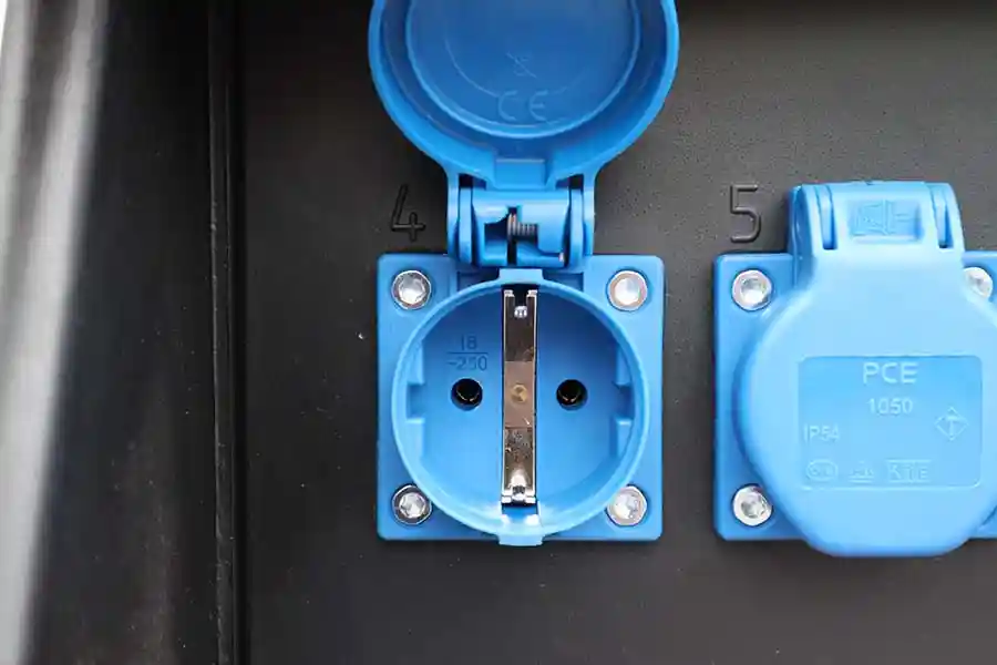 - Meerdere Aansluitingen: Met maar liefst negen aansluitingen biedt deze verdeelkast de flexibiliteit die je nodig hebt. Er zijn zes 2-polige lichtnet 230 volt aansluitingen en drie 5-polige CEE 400-volt-aansluitingen beschikbaar, waardoor je verschillende apparaten kunt aansluiten zonder gedoe. Optioneel is een model te bestellen met twee 5-polige CEE 400-volt-aansluitingen en één 4-polige 400V-aansluiting