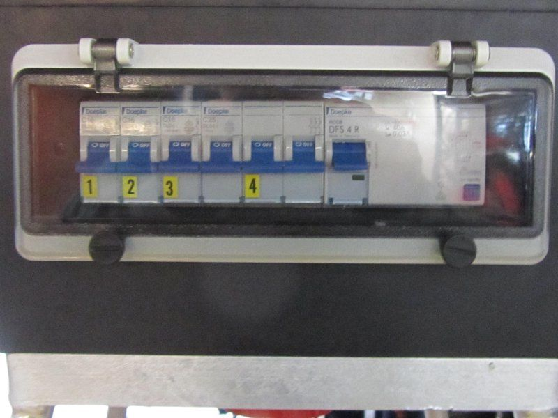 Deze dubbelgeïsoleerde verdeelkast is compleet beveiligd door middel van een aardlekschakelaar en automaten. De kast is spatwaterdicht en voldoet aan de normen NEN-60439-1/4 en NEN-1010. Daarnaast is deze zwerfkast voorzien van een CE-keurmerk. De hoofdschakelaar is 32 Ampère en de voeding geschiedt middels een 5-polige 32A-aansluiting met doorlus. Alle beveiligingen bevinden zich achter slagvaste klapvensters.