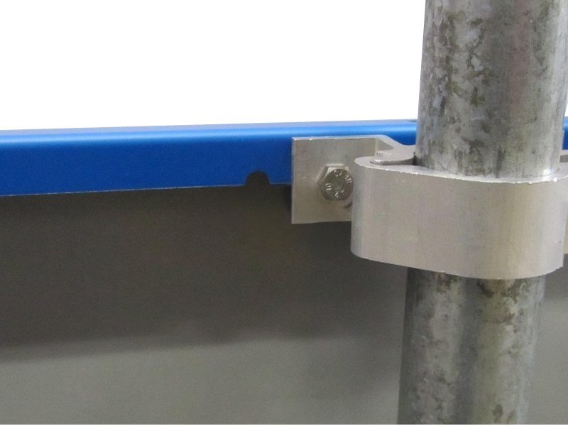 Dit officiële verkeersbord E08d 'Parkeerplaats voor autobussen' is uitgevoerd met een zogenoemde dubbel omgezette rand. Deze dient ter bescherming van het bord en voor de bevestiging van de beugels.
