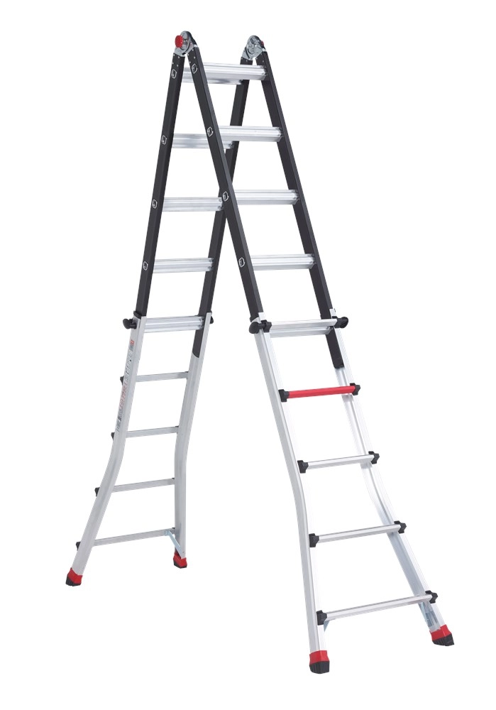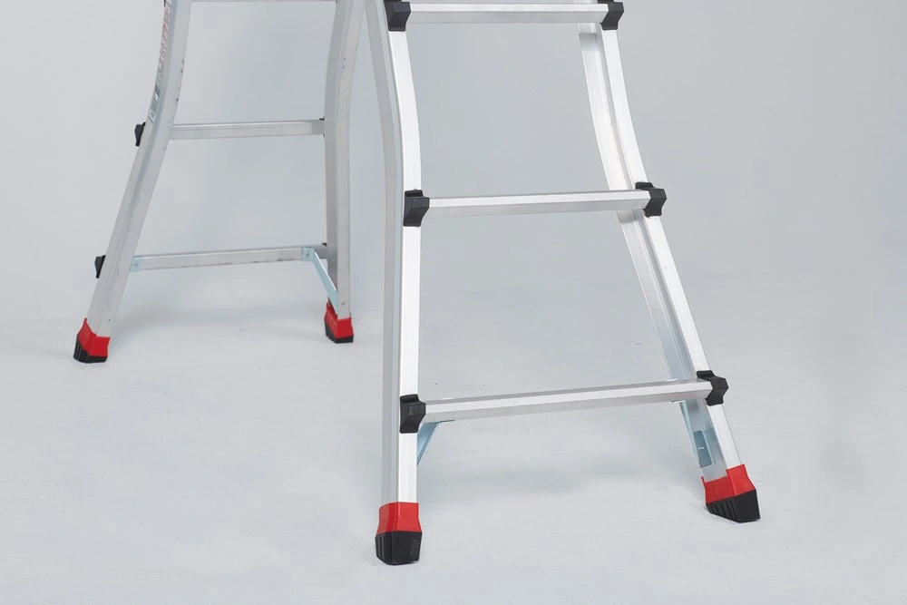 Dankzij het telescopische instelsysteem kun je de ladder eenvoudig aanpassen naar de gewenste hoogte en hem gebruiken in zowel A-stand als ladderstand. Hierdoor heb je altijd de juiste ladder voor elke klus bij de hand. De uitgebogen bomen zorgen voor een stabiele basis, waardoor je veilig en comfortabel kunt werken, zelfs op grote hoogtes.