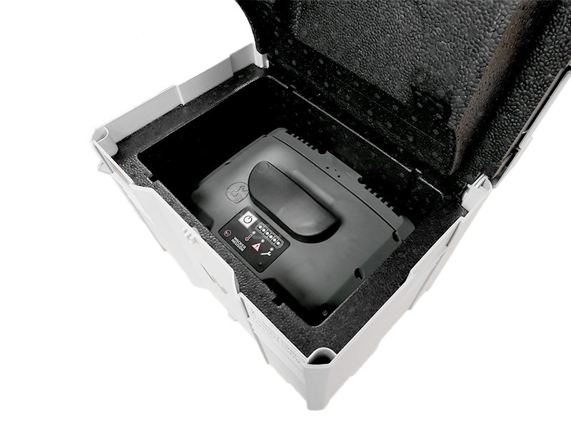Met behulp van deze systainer transportboxworden beschadigingen aan en vuilophopingen in je accu van Wacker zoveel mogelijk voorkomen. Deze systeembox is aan de binnenzijde namelijk bekleed met een 8 cm dikke laag schuim. Dit foam omsluit de oplaadbare batterij als een tweede huid en houdt deze keurig op zijn plek. Omdat de accu BOB10of BOB14niet kan verschuiven, vermijd je beschadigingen en vuil.
