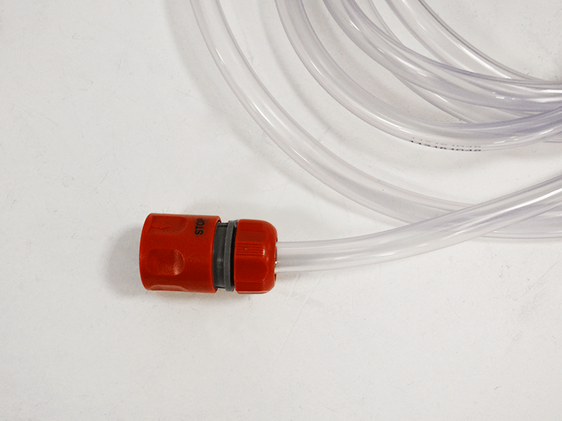 Deze watertank heeft een extra lange slang. Met een lengte van maar liefst vier meter biedt deze voldoende bewegingsvrijheid. Dankzij de standaard Gardena-koppeling past deze op alle gangbare doorslijpers.