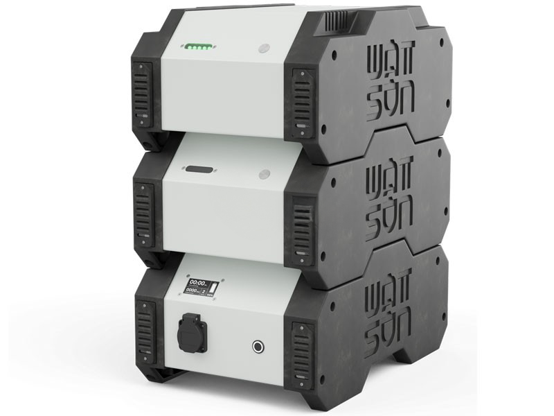 De Pack van Wattsun is een losse accu-unit die te allen tijde dinet te worden gebruikt met de Dock 1500 of Dock 2000 van Wattsun. Waar de Dock de hoofdunit is mét 230V-aansluiting, moet je deze Pack zien als uitbreiding. Deze losse accu zet je boven op de Dock van Wattsun. Sterker nog: je kunt tot maar liefst vier van deze Packs boven op de Dock zetten. Zo kun je het totale vermogen van de Wattsun geheel aanpassen aan de omstandigheden ter plaatse.