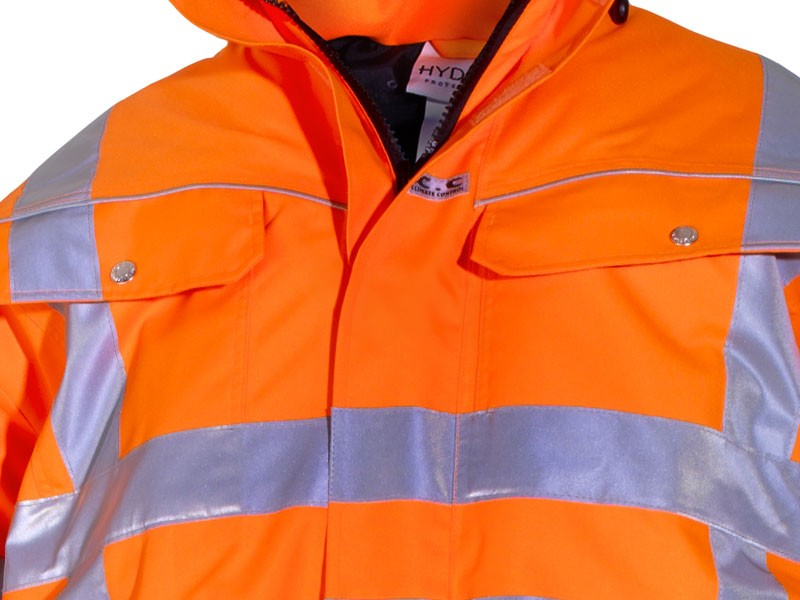 Deze winteroverall is uitgevoerd volgens de nieuwste veiligheidseisen van Rijkswaterstaat, zoals vastgelegd in de EN-ISO 20471-norm. Naast een fluorescerend oranje kleur heeft deze werkoverall rondom doorlopende reflecterende strepen. Bovendien telt de Uelsen nog een extra reflectiebies. Handig is eveneens de rits, welke is verdekt middels een flap met klittenband, voor een nog betere bescherming tegen de kou. Als laatste noemen wij nog de ritssluiting in de pijpen, die beide zijn uitgevoerd met een flap.