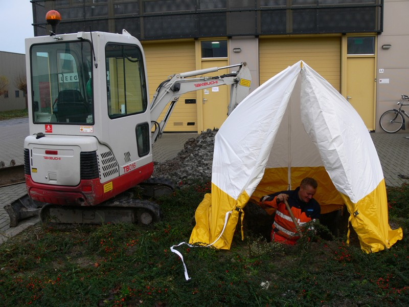 Doorwerktent model driehoek ideaal bij sleuven