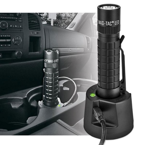 De Mag-TAC van Maglite is uitgevoerd met een unieke lithiumlegering-accu. Nare verrassingen als gevolg van lege batterijen zijn hiermee definitief verleden tijd. Om deze accu op te laden, wordt deze zaklamp compleet geleverd met een multifunctioneel laadstation. De zaklantaarn kun je rechtop in de cradle zetten, waarna je de accu via het lichtnet of de auto (12 Volt) snel kunt opladen. Zelfs het opladen via de USB-ingang van je computer behoort tot de mogelijkheden! Omdat het laadstation is uitgevoerd met een meerkleurig ledlampje, kun je gemakkelijk en snel zien wanneer de Mag-TAC weer is opgeladen.
