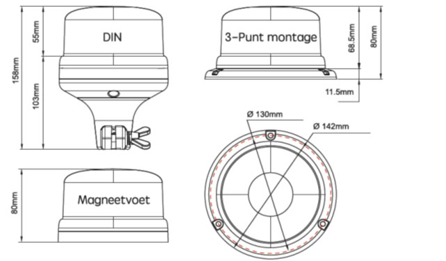- Zwaailamp B16 DIN-bevestiging opsteek