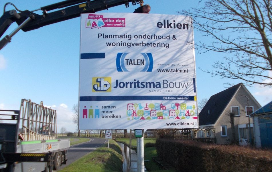 Soms moet een projectbord gewoon met je mee kunnen bewegen. Van bouwplaats naar terrein, van ingang naar parkeerroute, van evenement naar evenement. Dan zit je met een mobiele teaser helemaal goed. Dit projectbord staat op een betonnen voet en is daardoor makkelijk te verplaatsen. Ideaal als je tijdelijk zichtbaarheid nodig hebt of als jouw project steeds een stap opschuift. Wij plaatsen ’m kosteloos en halen ’m weer op wanneer het jou uitkomt. Lekker praktisch.