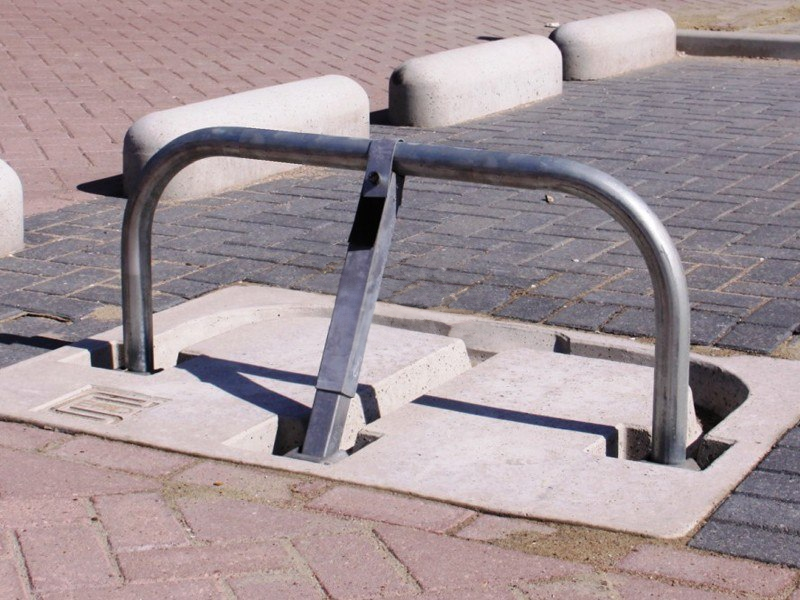 Parkeerbeugel klapbaar gegalvaniseerd met betonfundatie