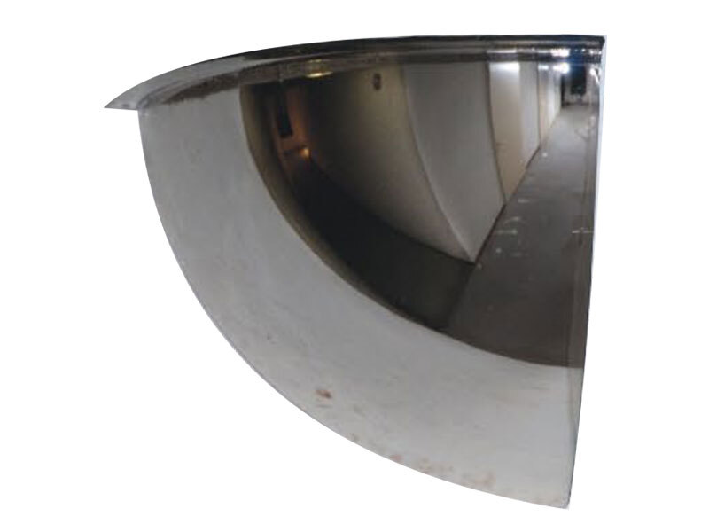 De kogelspiegel 180 graden heeft de vorm van een kwart bol en biedt zicht vanuit drie richtingen. Zo heb je niet alleen zicht van voren en van links, maar ook van rechts. Deze spiegel is ideaal voor kruispunten of hoeken waar verkeer of mensen uit meerdere richtingen komen. Bovendien wordt het beeld bij dit type spiegel nauwelijks verkleind, waardoor de waarneming helder blijft.