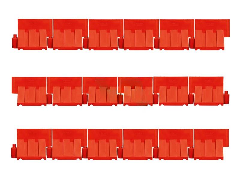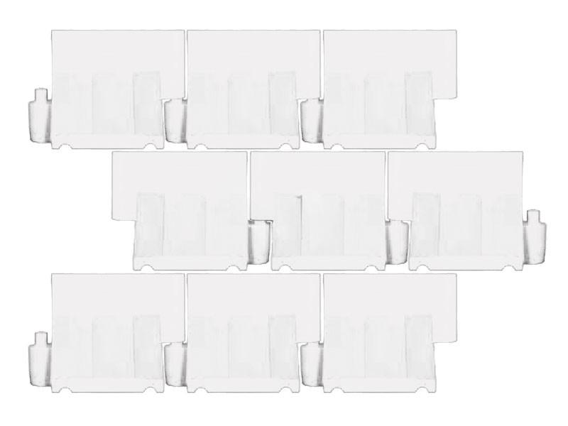 Deze complete sets separatoren zijn de officiële sets zoals die vaak worden besteld. Zo hebben wij complete sets met negen, achttien of zelfs zesendertig barriers in ons assortiment opgenomen. Deze separators zijn te bestellen in één en dezelfde kleur, of juist als complete set met witte en rode plastic separatoren door elkaar.