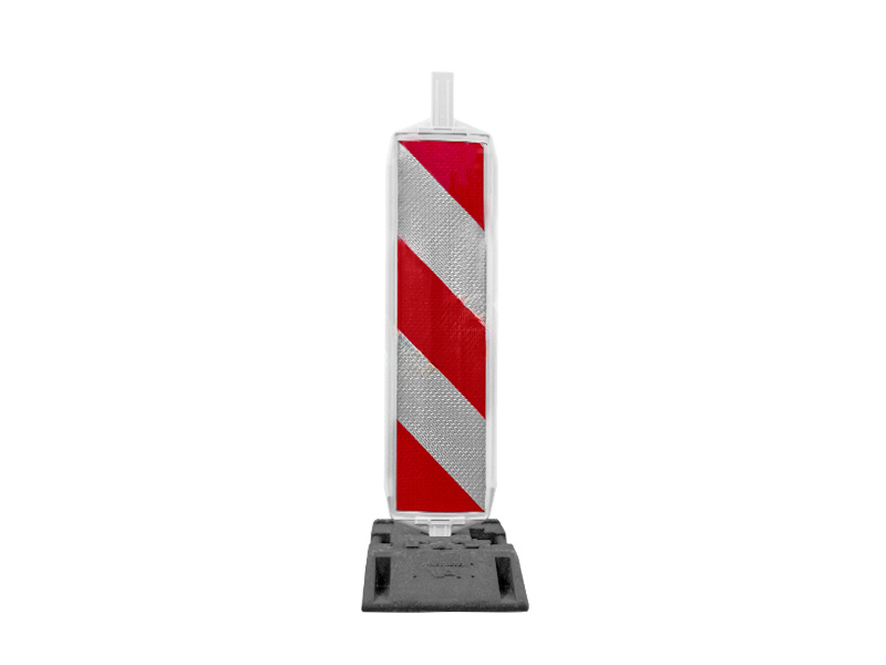 Een geleidebaken blijft niet zelfstandig staan en moet worden gecombineerd met een baakvoet. Deze verzwaarde voet is gemaakt van gerecycled kunststof en weegt tot wel 25 kilogram, waardoor hij eenvoudig door één persoon te verplaatsen is.
