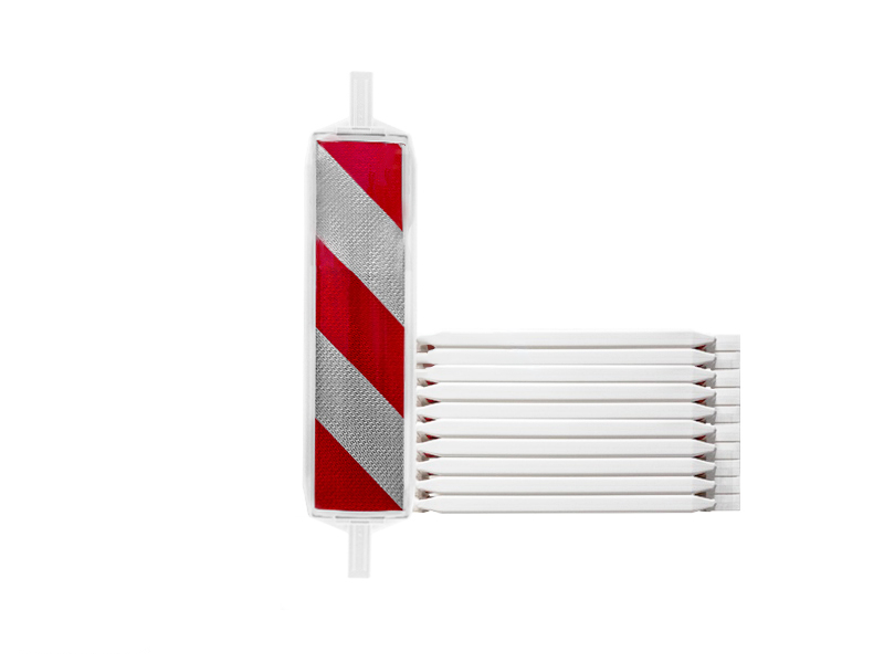 Een baakschild is altijd een stevige kunststof koker met aan beide zijden rood-wit reflecterende strepen van 100 bij 25 centimeter. Deze reflecterende vlakken zorgen voor optimale zichtbaarheid en veiligheid.